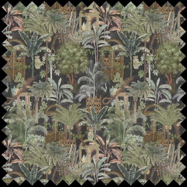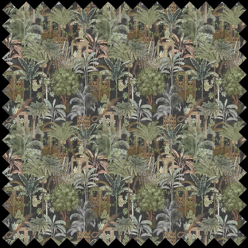 Descoperă eleganța nocturnă și misterul tropical cu materialul textil decorativ Jungle District (Night), un omagiu adus junglei urbane și rafinamentului clasic. Designul său este o simfonie vizuală de elemente vegetale luxuriante, ce evocă energia naturii dezlănțuite, într-un univers dominat de nuanțe nocturne profunde. Siluetele exotice și detaliile grafice subtile conturează, pe fundaluri întunecate, impresia unui castel impunător, cu uși nobile integrate organic în peisajul vegetal. Acest material textil premium transformă orice spațiu într-un colț de paradis misterios, în care civilizația și natura se împletesc armonios pentru a crea o atmosferă inedită de explorare și contemplare.