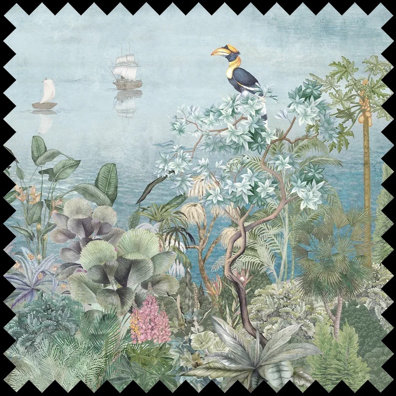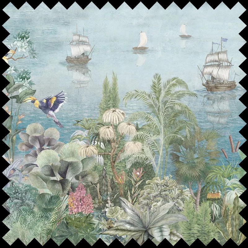Imaginează-ți un colț de rai în propria locuință, cu accente exotice și mister. Paradise Shore, material textil decorativ premium disponibil pe vladila.ro, transpune în universul textil atmosfera luxuriantă și enigmatică a insulei Más A Tierra. Designul său sofisticat redă armonios flora și fauna bogate, cu detalii vegetale și florale ce se împletesc într-un peisaj vibrant, dominat de siluete de corăbii ce evocă povești nespuse, invitând la visare și contemplare. Cromatica rafinată, inspirată de lumina tropicală, creează un efect vizual spectaculos, aducând în decor o notă de escapadă și sofisticare.