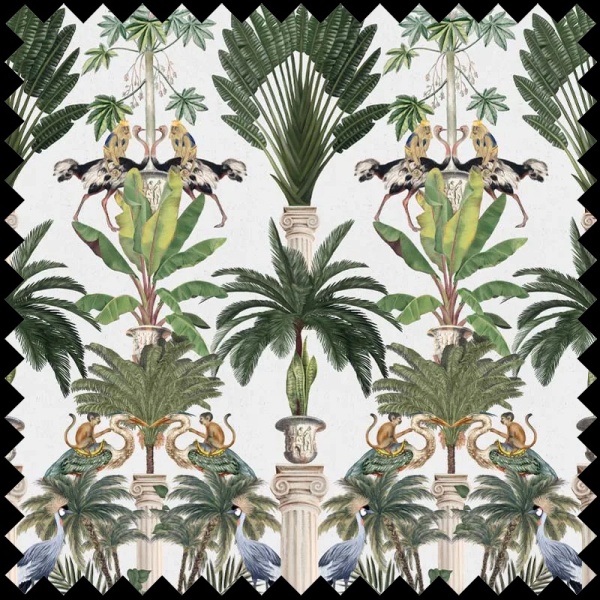 Descoperă rafinamentul și exuberanța naturii exotice reinterpretate artistic prin materialul textil decorativ Tropical columns (light), o invitație la evadare într-o oază de inspirație tropicală. Acest design spectaculos aduce împreună echilibrul dintre linii arhitecturale clasice și abundența vegetației luxuriante, rezultând un material textil premium care va transforma orice spațiu într-un adevărat colț de paradis.