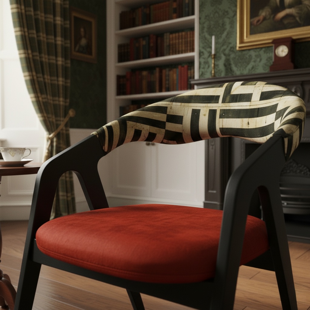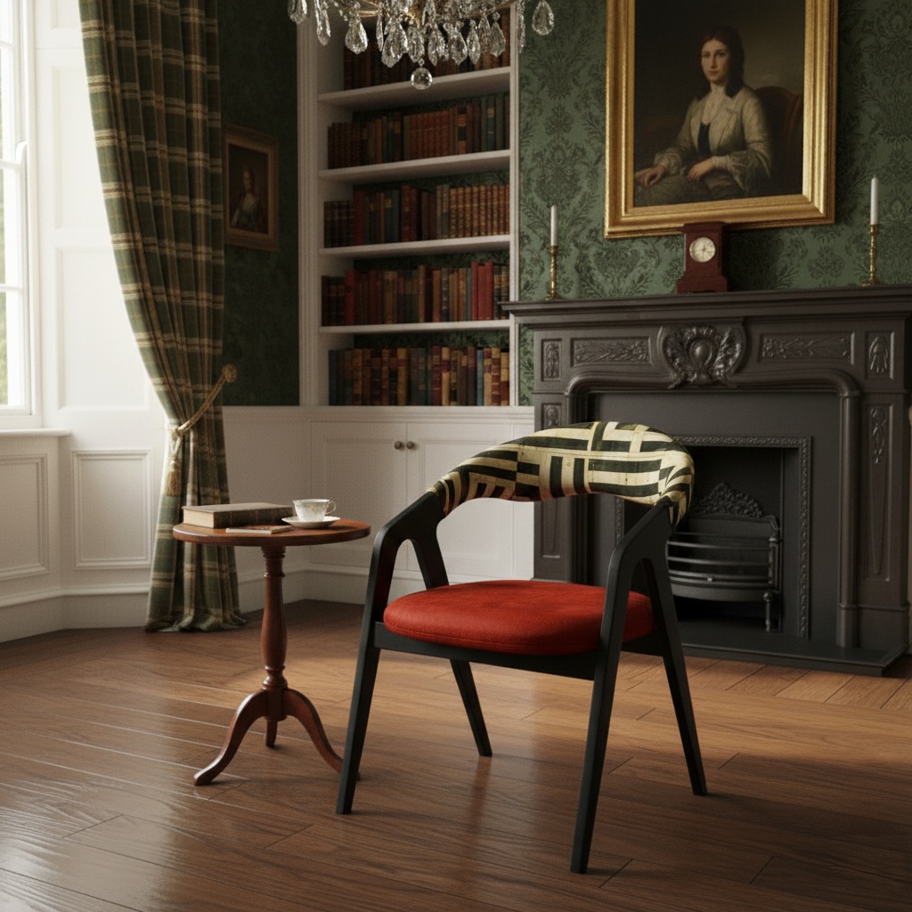 Prin combinația între lemn, textil și linie arhitecturală, scaunul aduce o energie caldă și intelectuală în spațiu. Este o piesă versatilă, care poate completa interioare în stil clasic, boem, modern eclectic sau mid-century. Fiecare detaliu este lucrat cu atenție și grijă, reflectând pasiunea VLAdiLA pentru obiecte autentice, expresive și atemporale.