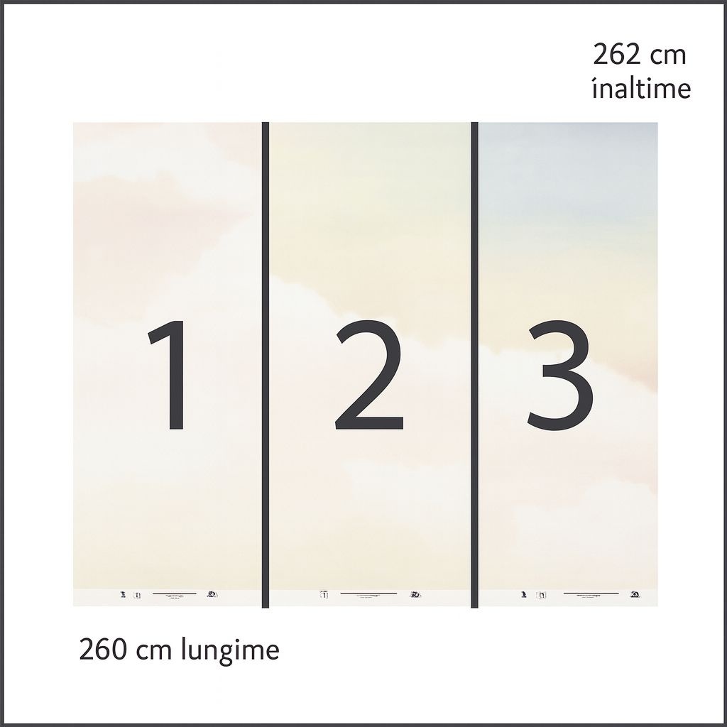 Modelul de tapet Azur Clouds face parte din colectia Sky Travel, descriind o lume a inocentei in care orice iti doresti devine posibil. Tot ce trebuie sa faci este sa te deschizi catre necunoscutul magic al designului. Paleta cromatica este bogata si diversa. Tonurile atent selectate contribuie la atmosfera fantastica a acestui tapet. Realizat cu infinita atentie la detalii, acesta infuzeaza spatiul cu o divina stare de bine. Relaxare si entuziasm, dinamism si energie pozitiva. Cele mai frumoase povesti vor izvori chiar din inima spatiului tau. Caci peretii vor deveni povestitori, ocrotitori magici ce vor veghea asupra celui mic.