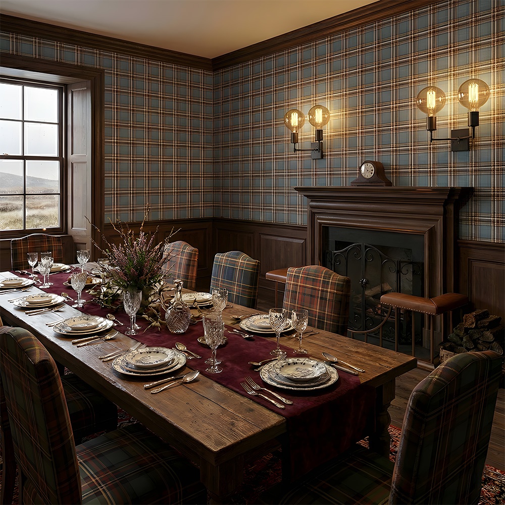 Datorită tonurilor sale profunde și echilibrate, acest tapet tartan este extrem de adaptabil, fiind potrivit atât pentru relaxare, cât și pentru socializare: