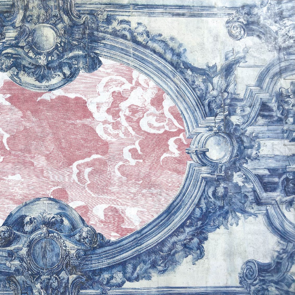Porcelain Sky este o frescă de o măreție delicată. Nuanțele pastelate și norii picturali creează o atmosferă de rafinament eteric. Inspirat de porțelanul pictat manual și de frescele rococo de pe tavane, acest tapet transformă opulența într‑o viziune blândă și poetică.